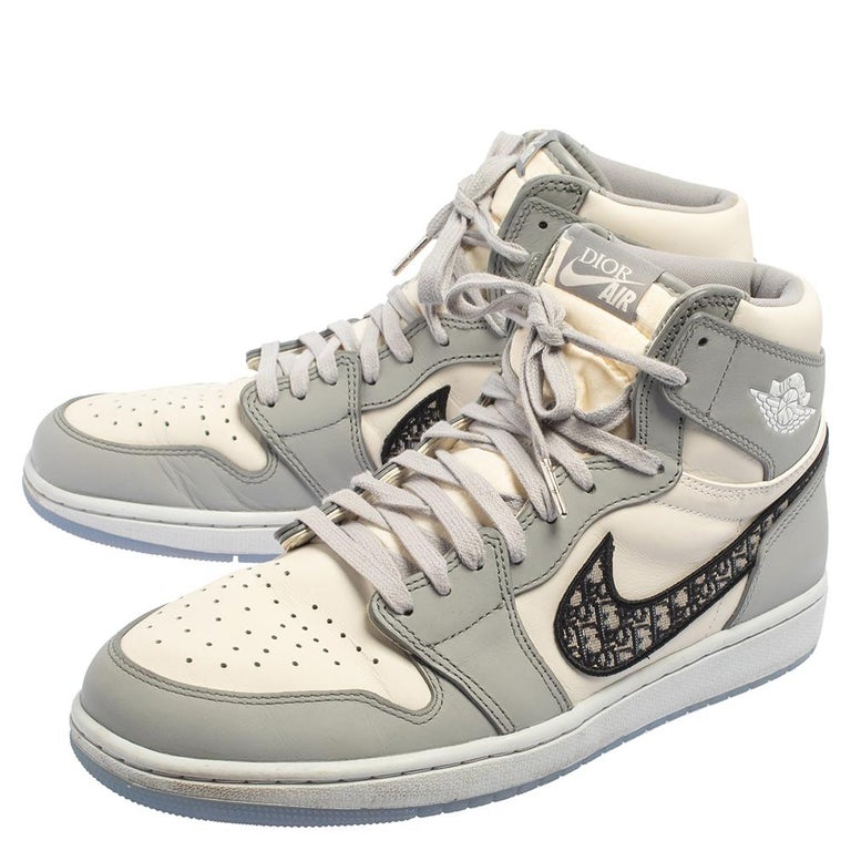 Jordan X Dior Grey White Leather Air Jordan 1 Retro High Top Sneakers Size 46 At 1stdibs